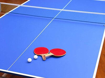 红双喜乒乓球台,正规比赛时安排在羽毛球地胶上进行.